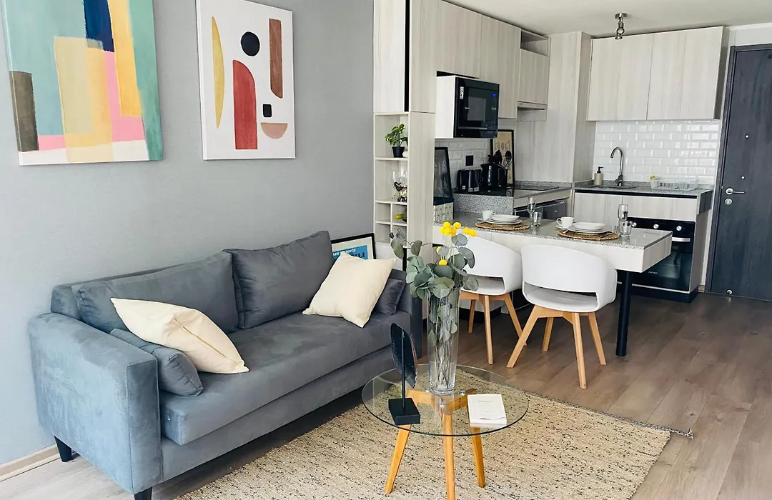 The 40 m² Departamento Nuevo A Pasos Del Metro - Santa Lucia apartment provides easy access to various city attractions, such as Museum of Visual Arts, situated nearly a 5-minute walk away. This 1-bedroom accommodation with a terrace is located approximately a 5-minute walk from Centre Gabriela Mistral Cultural Center.